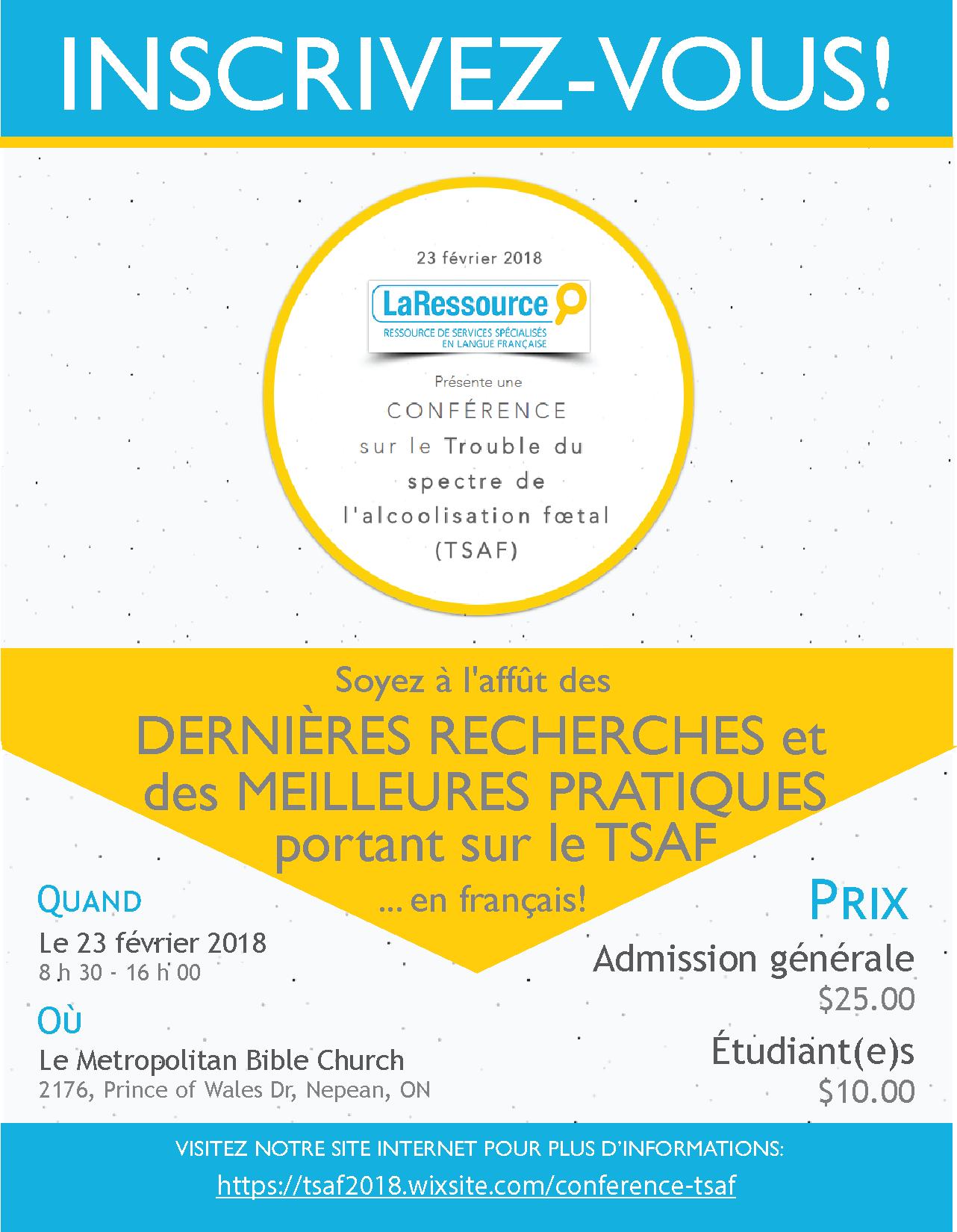 Come and learn the latest research and the Best Practices on FASD, in French.