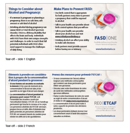 We welcome anyone to use these resources as long as FASD ONE is acknowledged. See the posters and tear offs below. If you would like more information about them please contact us by email.